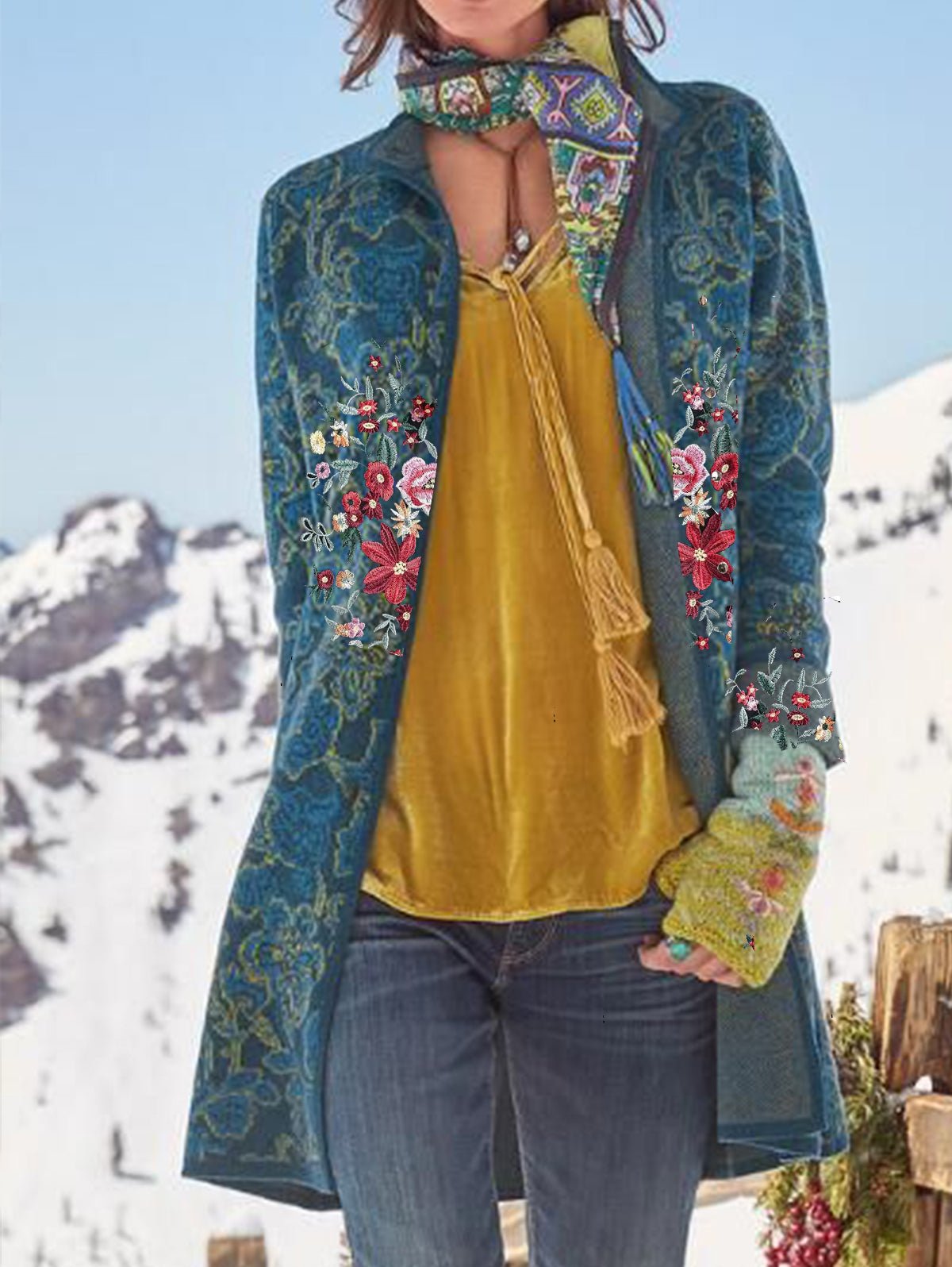 UR Fringe Detail Ethnic Print Open Front Cardigan