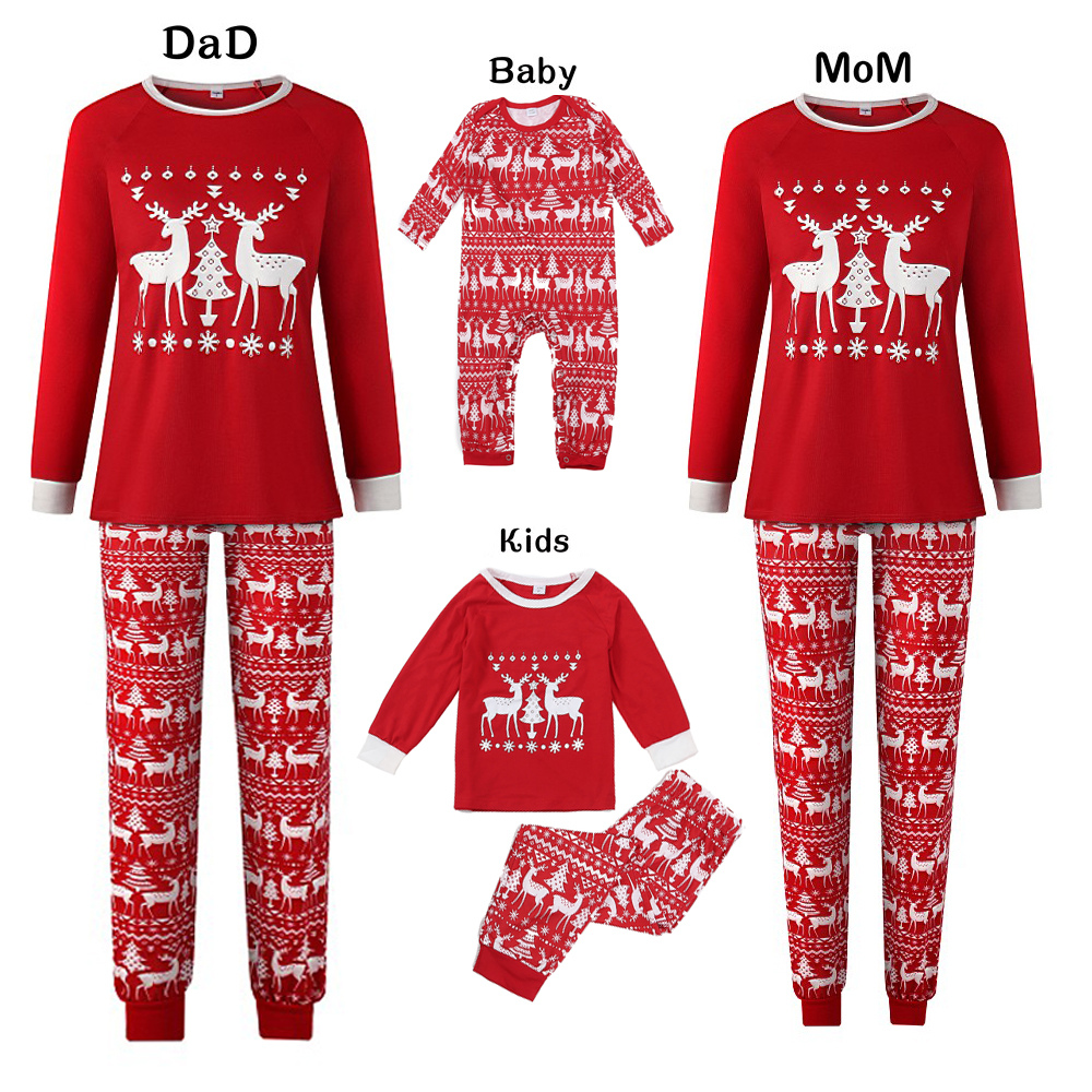 Christmas Print Red Round-neck Parent-child Pajamas Set