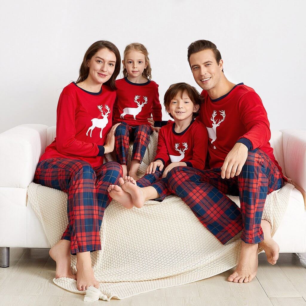 Christmas Reindeer Top and Plaid Pants Family Matching Pajamas Set