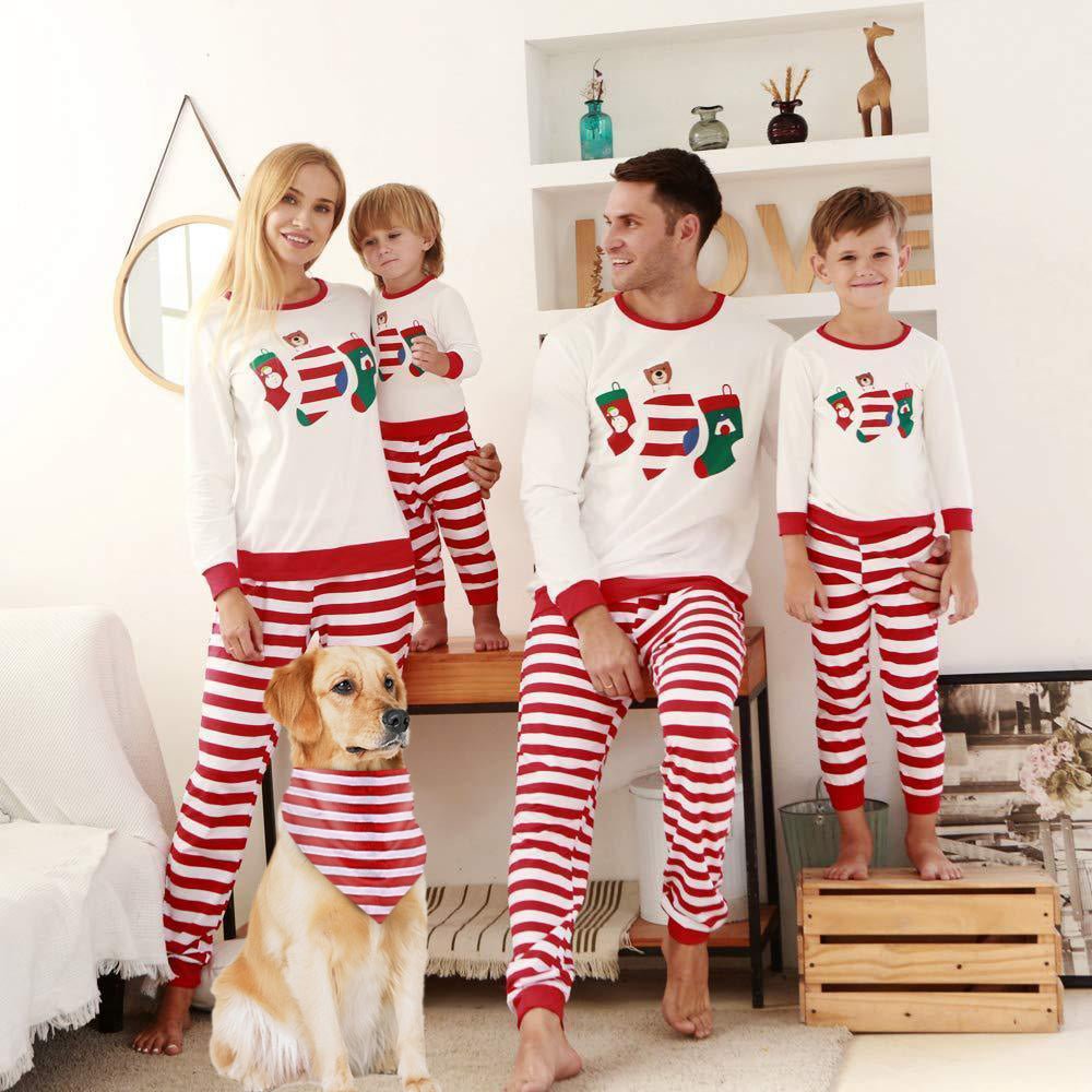 Christmas Sock Print Top and Striped Pants Family Matching Pajamas Set(with Pet Dog Clothes)