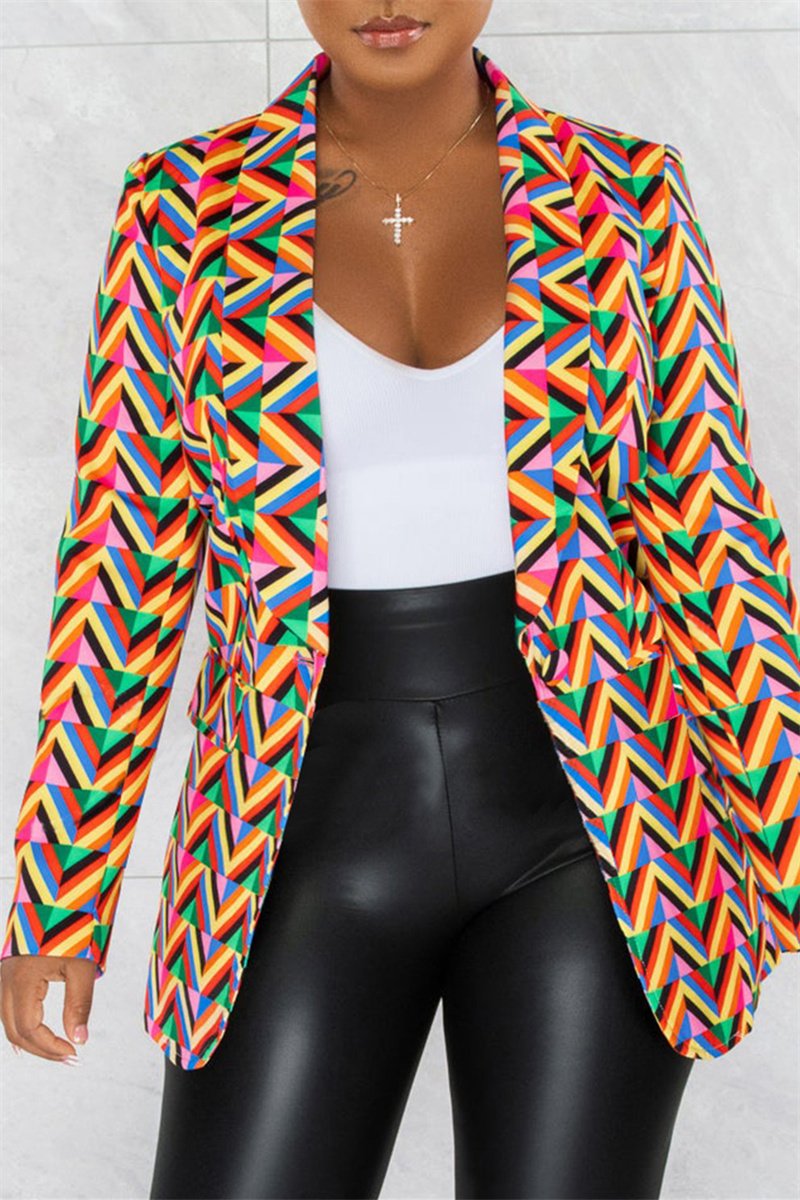 Colour Fashion Casual Print Patchwork Cardigan Turn-back Collar Outerwear