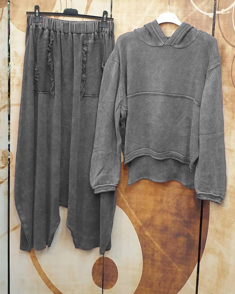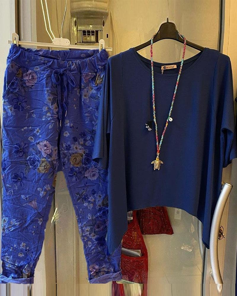 Ladies Casual Simple Color Long Sleeve Two Piece Suit
