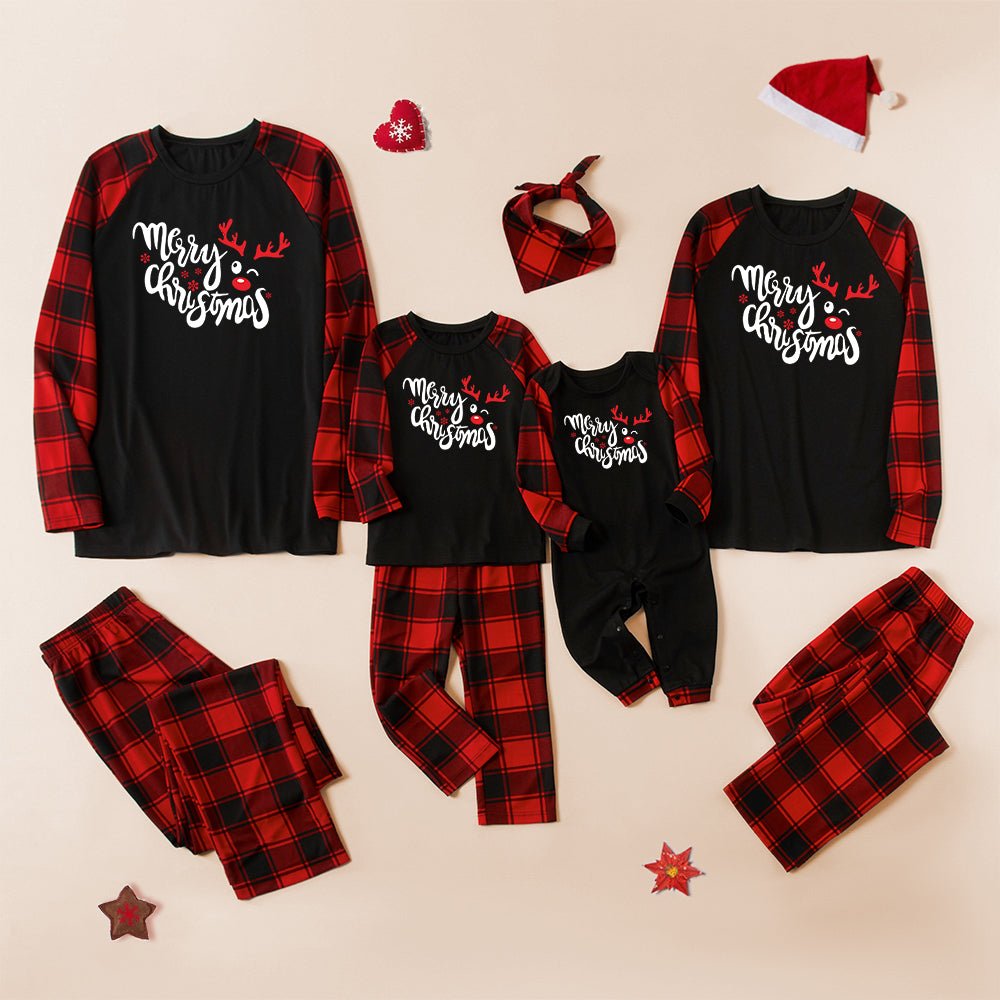 Christmas Alphabet Antlers Printed Parent-child Pajama Set (with Pet Dog Clothes)