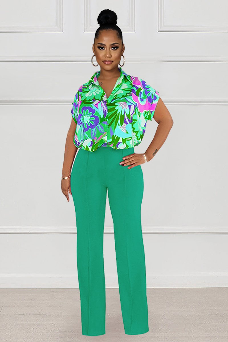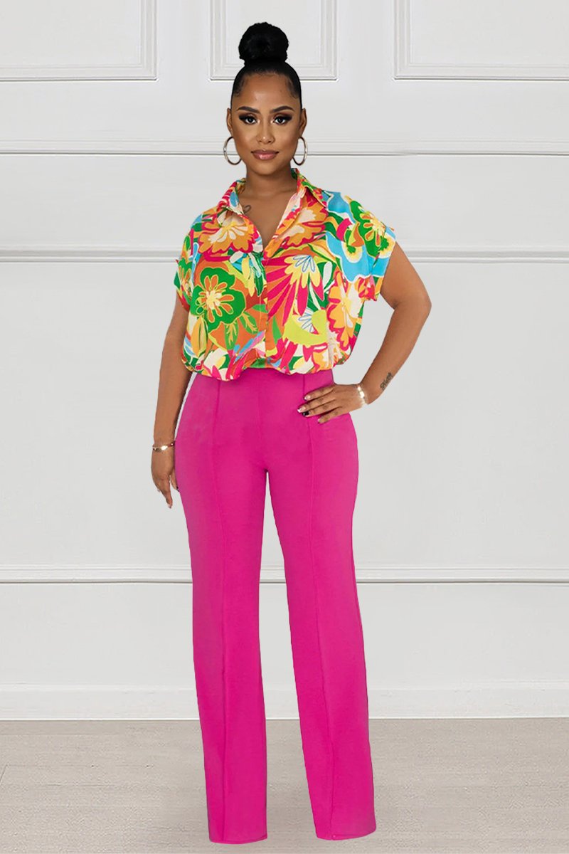 Be the first to review “Floral Print V Neck Short Sleeve Shirt Straight Leg Vacation Pants Two-Piece Set”