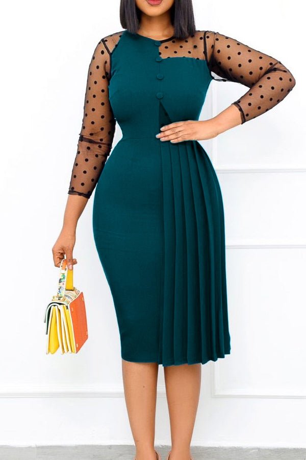 Mesh Splicing Ruched Slim Fit Pencil Dress