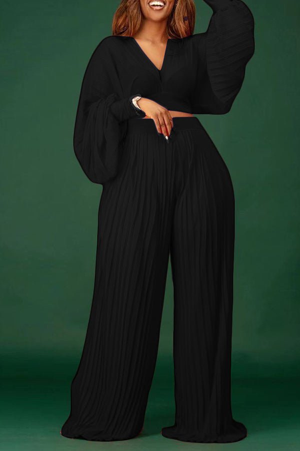 V-Neck Lantern Sleeve Pant Suit