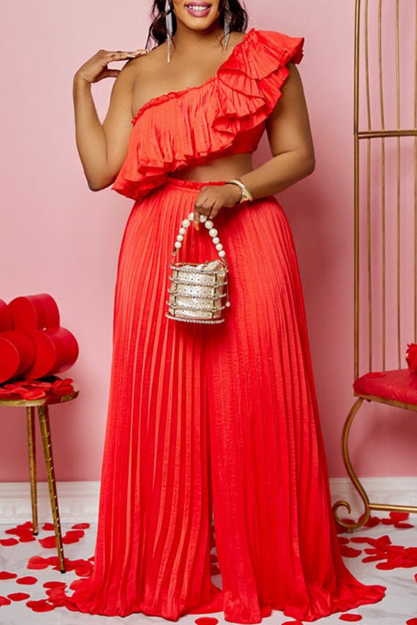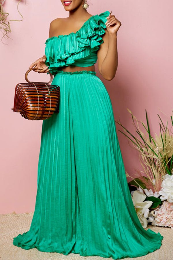 Be the first to review “Pleated Ruffle Wide Leg Pants Suit”