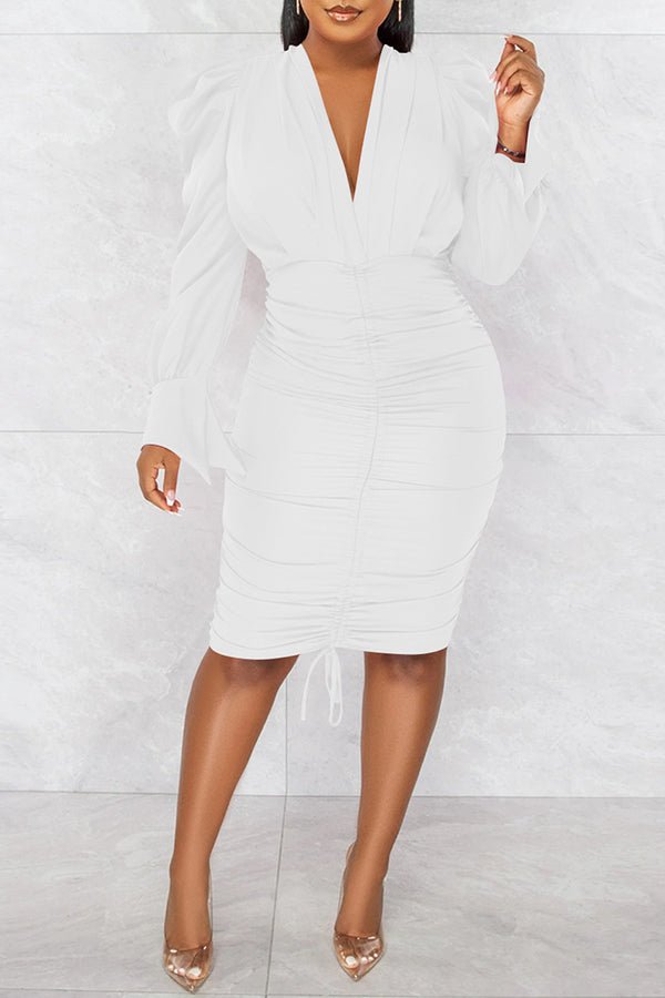 Be the first to review “Puff Sleeve Drawstring Ruched Dress”
