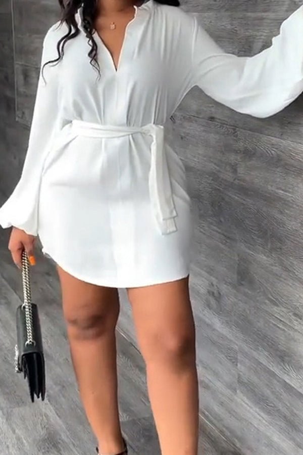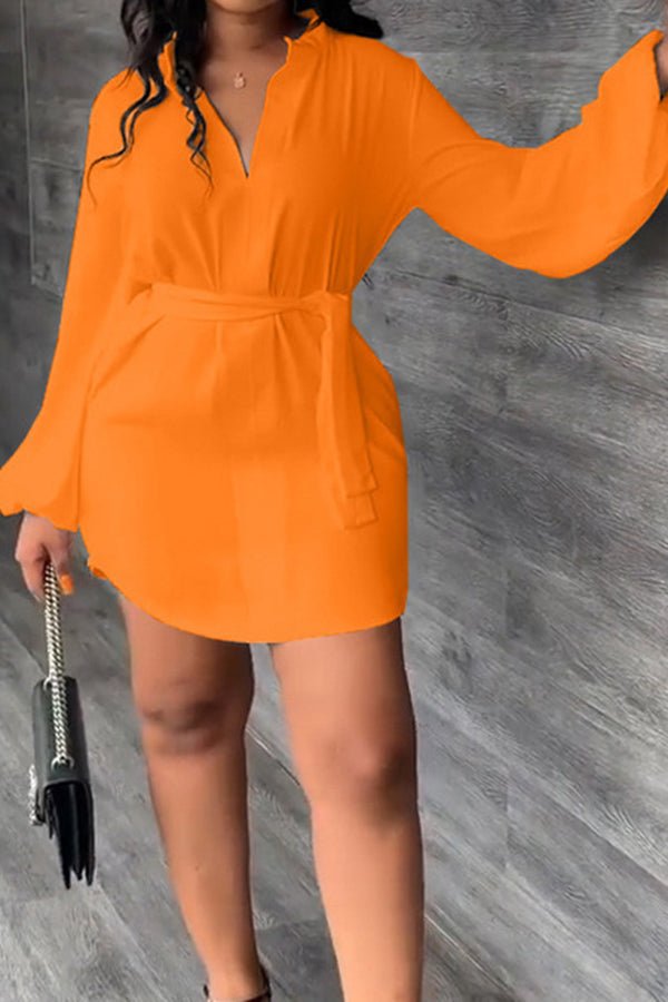 Puff Sleeve Tie Belted Shirt Dress