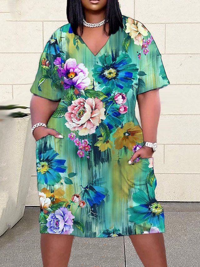 Gender: Women’s, Style: Modern, Fashion, Occasion: Weekend, Outdoor, Going out, Daily, Dresses Type: Casual Dress, Neckline: V Neck, Fabric: Polyester, Design: Print, Pocket, Sleeve Length: Short Sleeve, Elasticity: Micro-elastic, Look After Me: Machine wash, Pattern: Color Block, Geometric, Floral, Season: Summer, Spring, Dress Length Type: Midi Dress, Special Size: Plus Size,