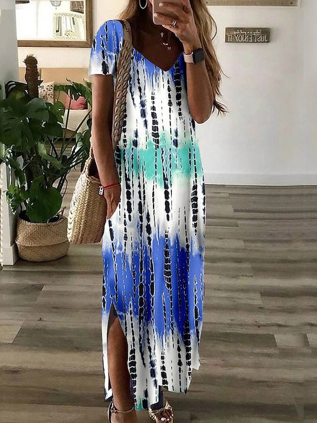 Gender: Women’s, Style: Streetwear, Fashion, Casual, Occasion: Weekend, Outdoor, Going out, Daily, Vacation, Dresses Type: Summer Dress, Casual Dress, Shift Dress, Print Dress, Neckline: V Neck, Fabric: Polyester, Design: Print, Pocket, Split, Sleeve Length: Short Sleeve, Elasticity: Micro-elastic, Look After Me: Machine wash, Pattern: Floral, Season: Summer, Spring, Fit Type: Loose Fit, Dress Length Type: Long Dress Maxi Dress,
