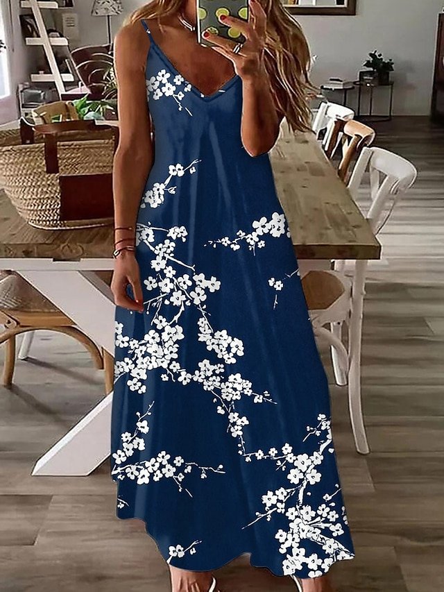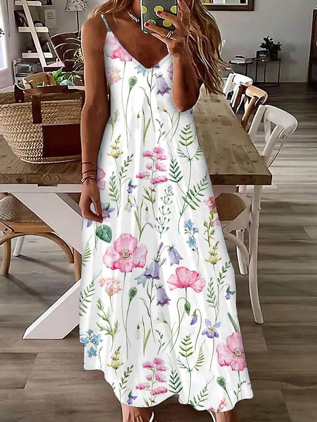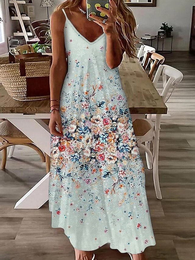 Gender: Women’s, Style: Elegant Dress, Fashion, Occasion: Weekend, Beach, Daily, Vacation, Date, Dresses Type: Print Dress, Slip Dress, Summer Dress, Casual Dress, Neckline: V Neck, Fabric: Polyester, Design: Print, Sleeve Length: Sleeveless, Elasticity: Micro-elastic, Look After Me: Machine wash, Pattern: Floral, Season: Summer, Spring, Dress Length Type: Long Dress Maxi Dress, Fit Type: Loose Fit,